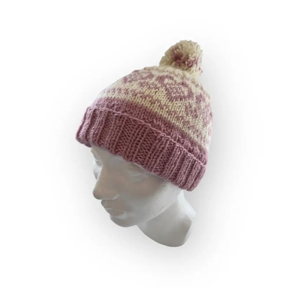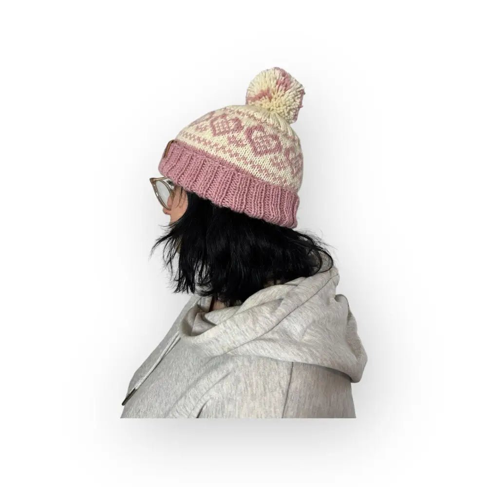 A pink heart beanie brings sweet warmth and style to a winter day. The hand-knitted beanie combines a soft pink hue with off-white, and is topped with a beautiful yarn tassel that adds a playful and charming detail to the outfit. The heart pattern adds a touch of cuteness to the beanie and makes it an instantly recognizable favorite for the cold winter days.