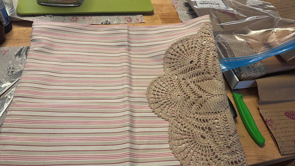Made from strong and thick cotton, this cushion cover brings a touch of classic elegance and timeless beauty of craftsmanship to your interior. Soft pink and beige stripes create a harmonious background, which is finished with vintage lace with nostalgic sophistication. This cushion cover is not just a decorative element, but an eye-catcher that exudes the charm of bygone times and the appreciation of craftsmanship.