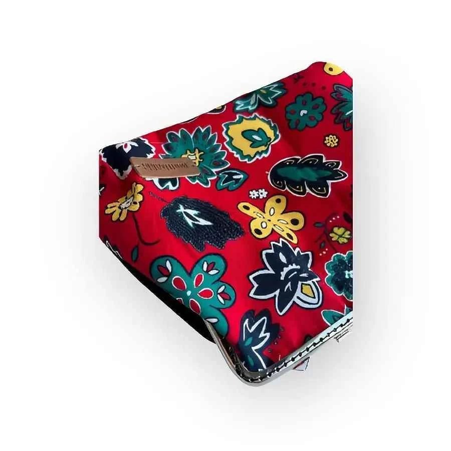 The red purse, which is perfect as a make-up bag, purse or small handbag, is like a small stylish addition to your everyday life. Its 20 cm width, 13 cm frame width and 16 cm height make it spacious, but still compact. A small pocket on the inside lining and a key ring are handy details that help keep important small items organized and easy to find. The black background of the purse creates an elegant contrast to the bright red, making it a suitable accessory for many situations. This purse is not only practical, it is also a beautiful and delightful addition to your daily accessories collection.