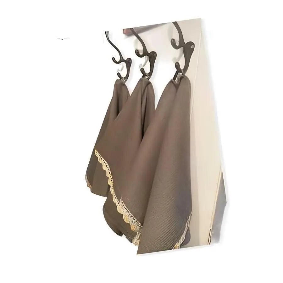 The Waffle hand towel brings a touch of vintage elegance and charming vintage style to your bathroom. Made from a muted green waffle fabric, the edge of the towel is decorated with beautiful lace crocheted with gradient-dyed cotton yarn, which completes the vintage-inspired look. The excellent absorbency and softness of the waffle fabric make the towel a practical choice, and its properties only improve over time - the more you use the towel, the more comfortable and absorbent it becomes.