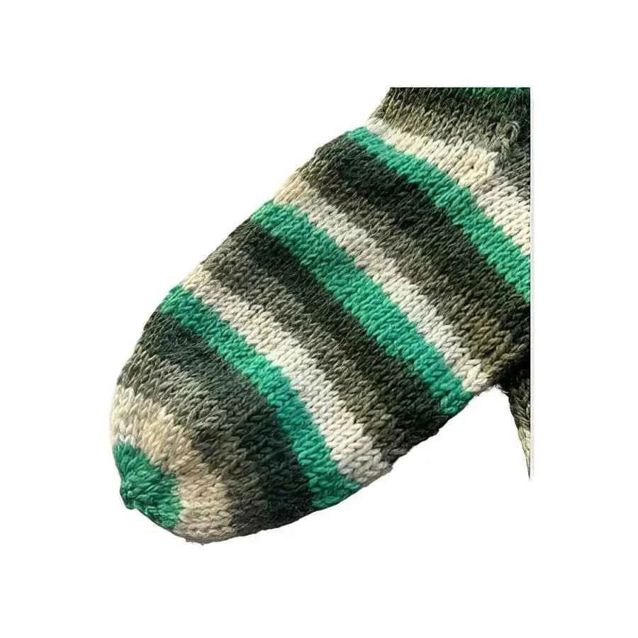 Grönrandiga strumpor kommer att lägga till lite färg till din outfit och hålla tårna varma. Det grönrandiga mönstret är som en touch av vårgrönska, vilket ger friskhet och liv. Randiga strumpor kombinerar både stil och funktionalitet, vilket gör dem till ett perfekt val för både hem- och utomhusaktiviteter. Svep in dig i värme och njut av varje steg!