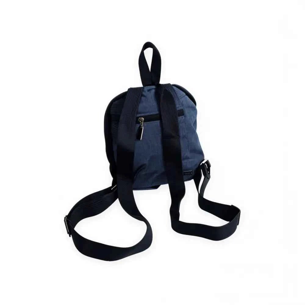 Den lilla ryggsäcken kombinerar avslappnad denim och stilrent svart konstläder, vilket skapar en unik look. Dubbelförstärkta front- och bakpaneler säkerställer att ryggsäcken behåller sin ursprungliga design och stiliga utseende. Bomullsfodret på insidan ger komfort. Denimryggsäcken har en ficka med lock på framsidan och en ficka med dragkedja på baksidan för att hålla dina viktiga föremål organiserade och lättillgängliga. Justerbara axelband i svart bomull ser till att ryggsäcken sitter bekvämt och ergonomiskt, oavsett om du är på väg till jobbet, skolan eller ett stadsäventyr.